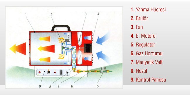 Otomatik (GP) ve manuel (GP/M) kontrollü ısıtıcılar seyyar veya askılı modelleriyle inşaatlarda, şantiyelerde, seralarda, tavuk çiftliklerinde, oto servislerinde ve benzeri tüm açık, iyi havalandırılan yarı açık alanlarda emniyet termostadı ve gazı kesen emniyet valfleri sayesinde ısıtma, kurutma, dona karşı koruma amacıyla güvenle kullanılabilir.